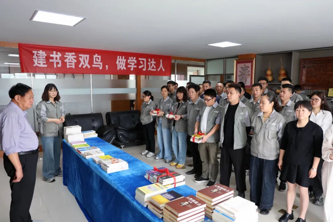 4月23日,在第30個(gè)“世界讀書日”來臨之際,浙江雙鳥機(jī)械有限公司積極響應(yīng)"全民閱讀"號(hào)召,組織開展“建書香雙鳥,做學(xué)習(xí)達(dá)人”主題贈(zèng)書活動(dòng)。集團(tuán)張董事長(zhǎng)親自向員工贈(zèng)送精選書籍,鼓勵(lì)員工以閱讀提升專業(yè)素養(yǎng),共建學(xué)習(xí)型企業(yè)。